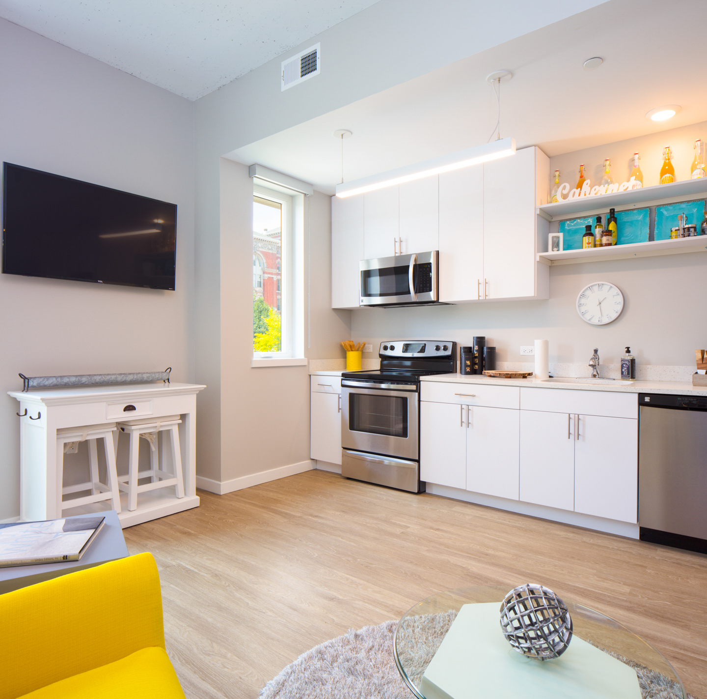A primary design goal was to create smaller apartments than usually found in the market and pass the efficiency on in more affordable rents – without sacrificing livability. Innovative studio design, including stacking the living room and bedroom, accomplished this retaining an open, spacious atmosphere in the apartments. Residents also enjoy amenities programmed to meet their modern needs, like an Uber/Lyft waiting area at the front entrance, package receiving systems, a casual lounge and adjacent patio courtyard all overlooked by a fitness room. Additionally, an elevated pool deck and pool abutting Park Avenue create the ultimate urban scene.