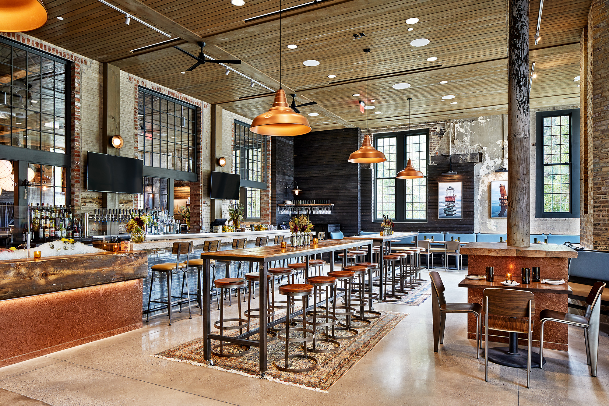 True Chesapeake Oyster Co is the first Maryland oyster farm to open a restaurant and is an anchor tenant at Whitehall Mill. Extending their restorative mission, the restaurant offers a “restorative dining” experience in the expansive existing boiler building. Diners can enjoy a menu highlighting the farm’s bounty, while being immersed in the layered history of the space or can enjoy the large outdoor patio overlooking the Jones Falls. Layers of history are visible everywhere within Chesapeake True Oyster. Diners are offered a variety of spaces to enjoy including sizable bar, comfortable dining area and outdoor patio space.